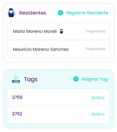 Podrás saber cuando el residente sale o entra con sus tags y así generar reportes de uso.